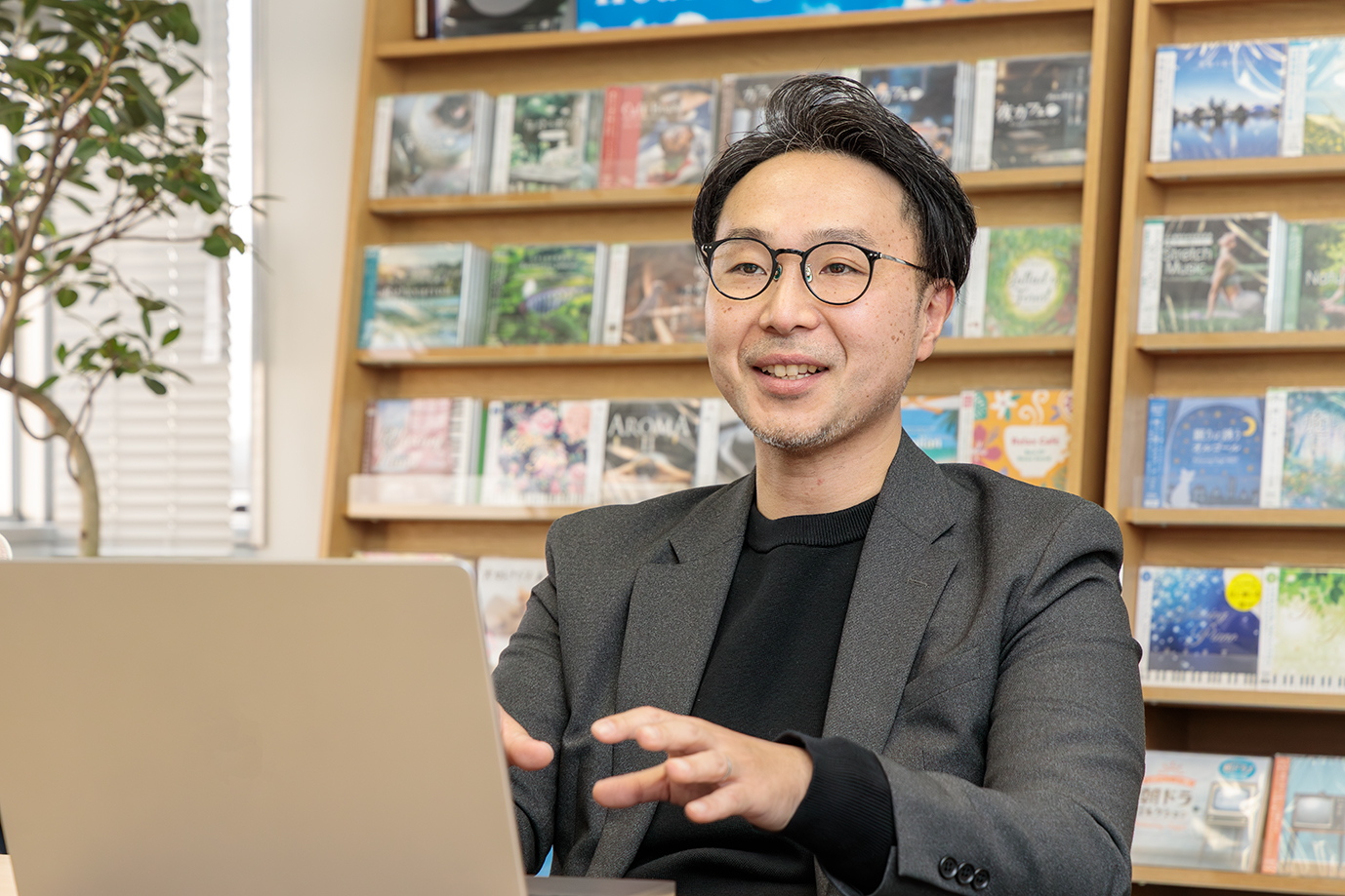 当社はヒーリングミュージックや自然音、オルゴール曲など、「心と身体にやさしい音楽」を提供しています。試聴前後のセロトニンやストレス物質の変化を検証した「メンタルフィジック・シリーズ」など、医師が監修した作品も制作しています。音楽配信事業が売上を牽引するなかで、ECサイトの売上や法人向けサービスも拡大するための施策を行っていました。しかし、さらなる成長を図るには、デジタルを活用した施策の強化が課題でした。